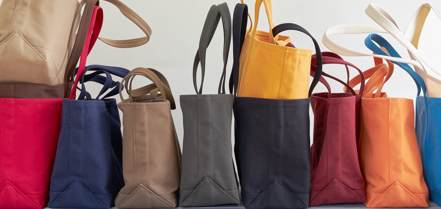 10月10日はトートの日。トートの日にあわせて発売したコンパクト2WAYトートは、“毎日使いたくなるバッグ”をテーマに、使いやすさと手触りの良さにこだわりました。気兼ねなく日々使っていきながら、バッグが味わい深く変化していく様子もお楽しみください。 アクセントとして使用しているストライプ柄の生地は、染め糸で織り上げた10号帆布を使用しています。吸い込まれそうになるほどの規則正しい織り目は、複数の色糸(タテ糸)から形成されており、プリントでは表現できない立体的な手触りと鮮やかな織り柄が楽しめます。シャトル織機でゆっくり織ることで生地はふっくらとした仕上がりに、柔らかくしっとりとした感触も味わえます。 ボディの生地は厚手6号帆布を使用しています。底が2重になっているため型崩れせず床に置いても自立します。帆布らしい粗い織り目が特長ですが、上質な綿100%のコーマ糸を使用することで、肌ざわりはしっとりと滑らかに。使うほどに柔らかく変化します。 間口にファスナーが付いており、中身が見える心配がなく、貴重品も安心して入れられます。荷物の出し入れが多い時には、ストライプのマチ部分を内側に折り畳んでオープンタイプとしてお使いください。 マチがしっかりとあり見た目以上に収納力があります。ポケットは内外に1つずつ、ショルダーは取り外しが可能です。 帆布のバッグは、経年変化も楽しみのひとつです。お使いいただきながら、味わい深くなっていくバッグを育んでみてください。カラーはキナリと黒の2色をご用意しています。