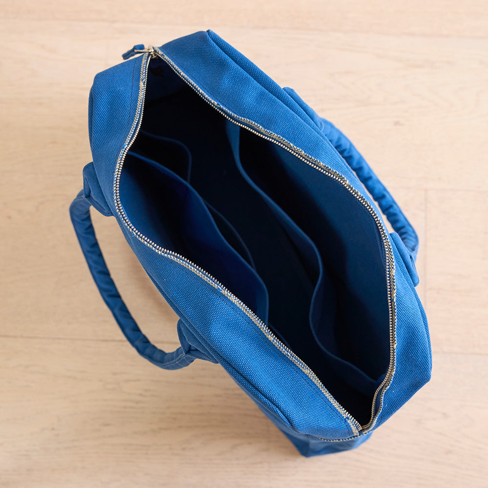 ボディと持ち手はすべて帆布でつくられており、所々にあしらわれたキナリ色のセルヴィッジがアクセントに。
