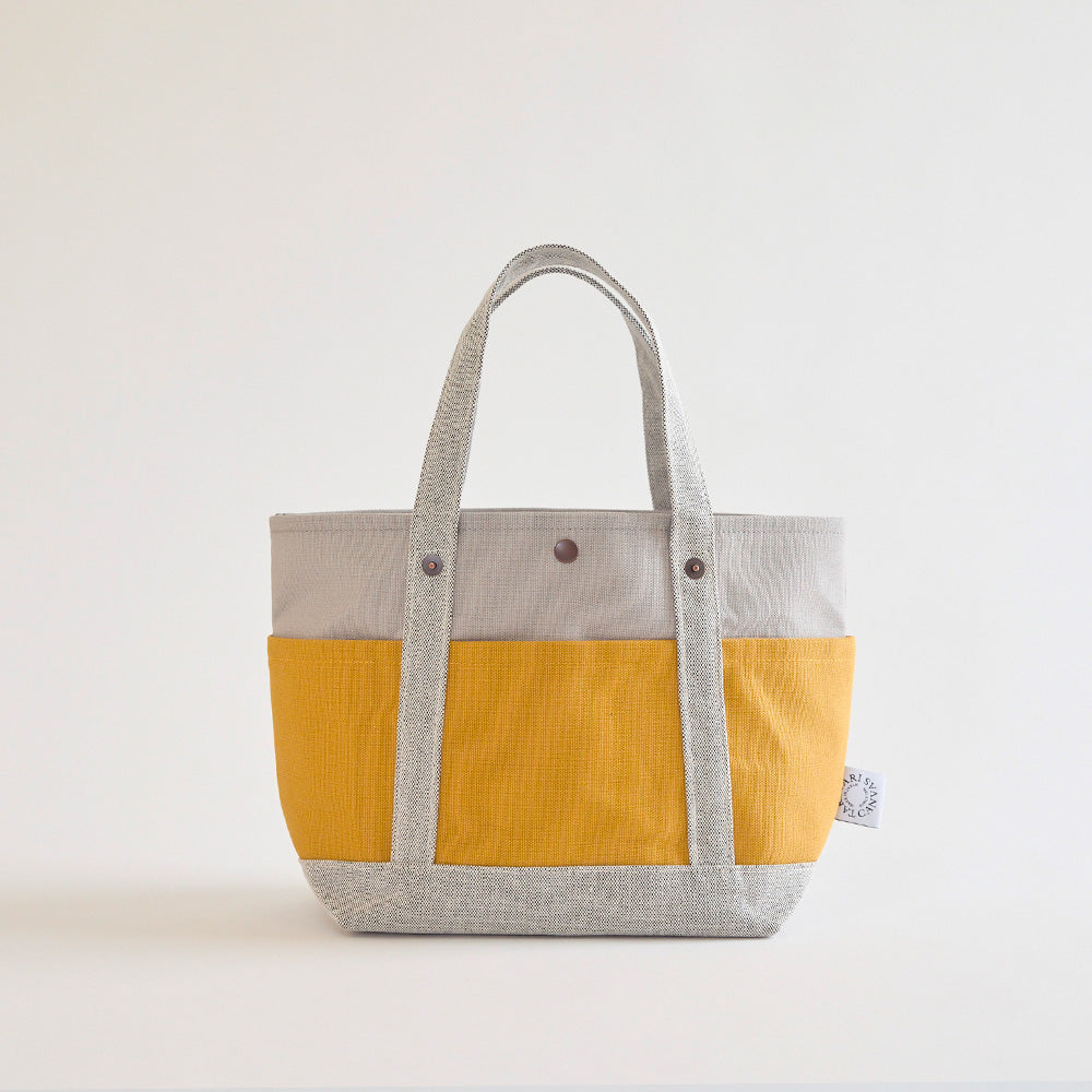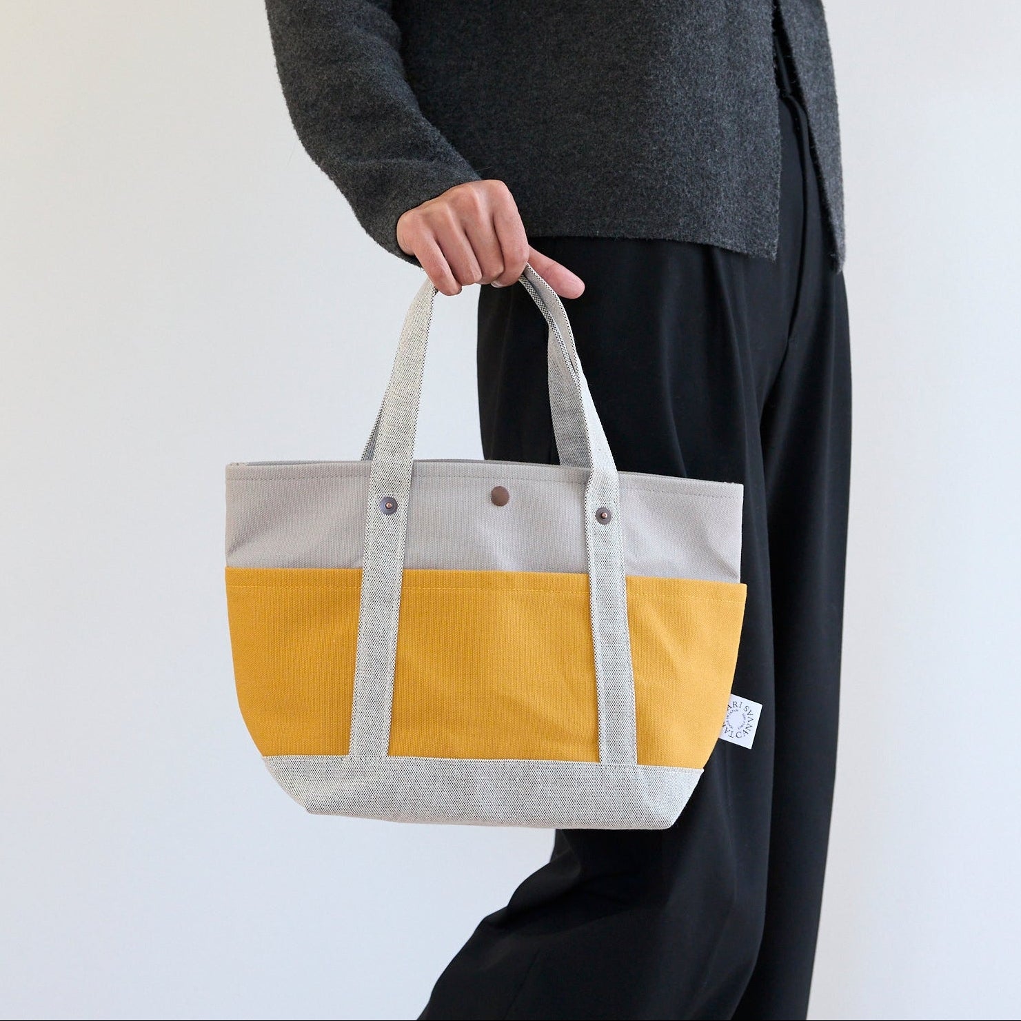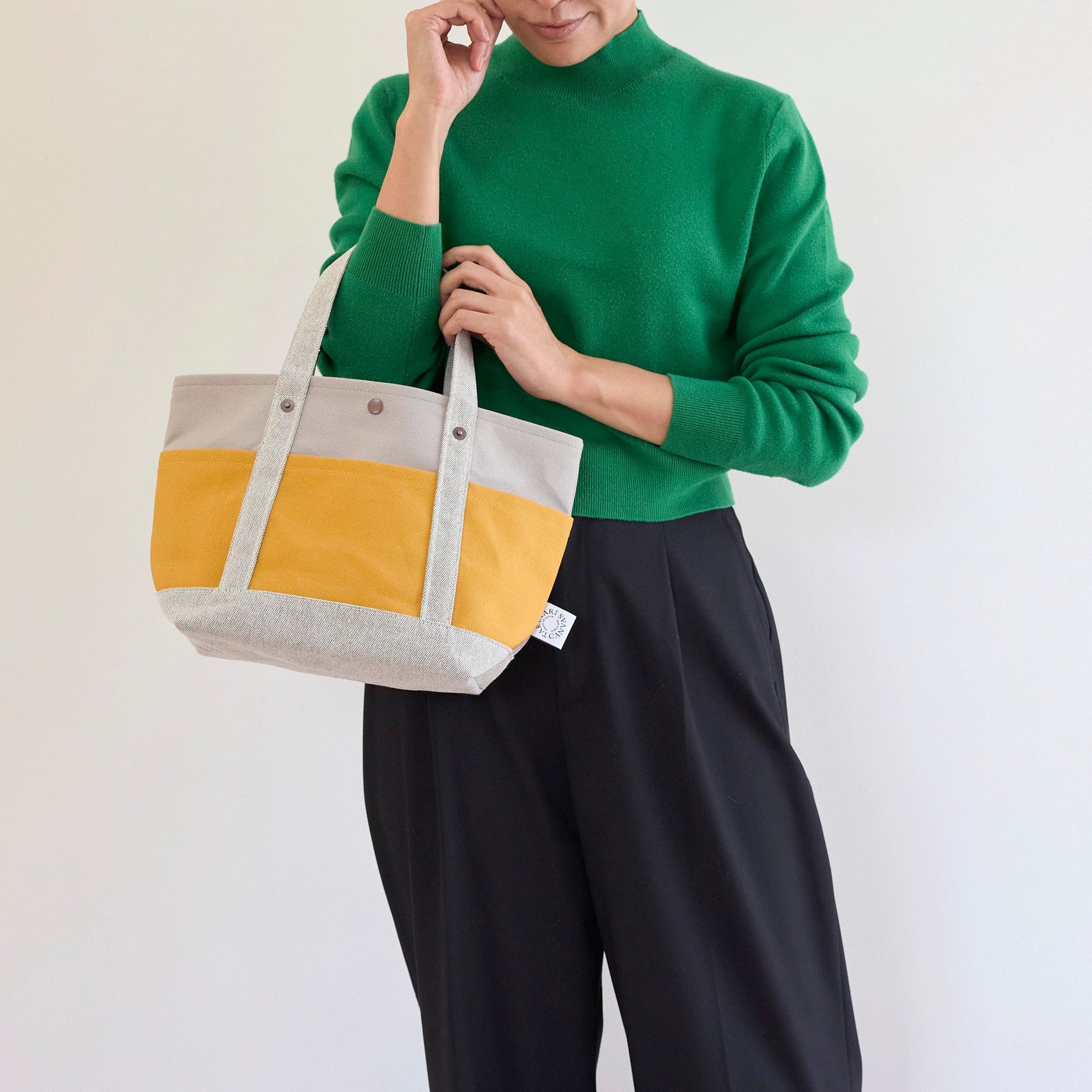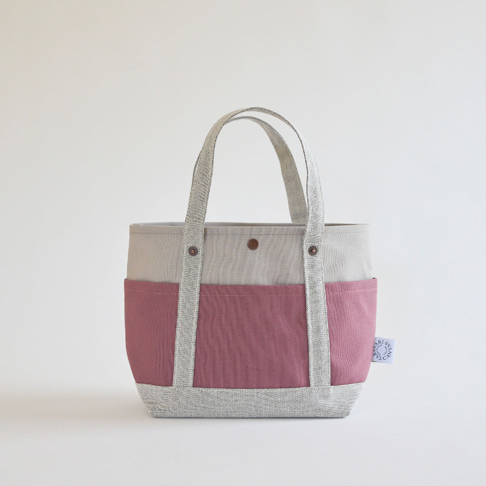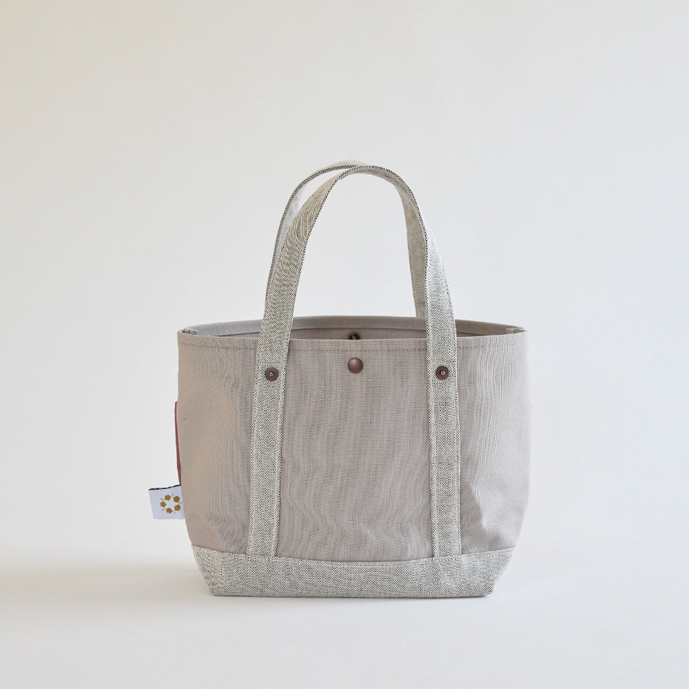 8号帆布を使用し、持ち手と袴に使用した爽やかなシャンブレー帆布がアクセントになっています。小ぶりながらしっかりと収納力があり、ポケットも充実。軽量なので、デイリーバッグにおすすめです。