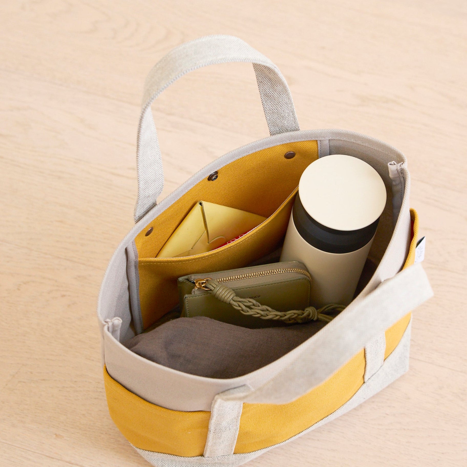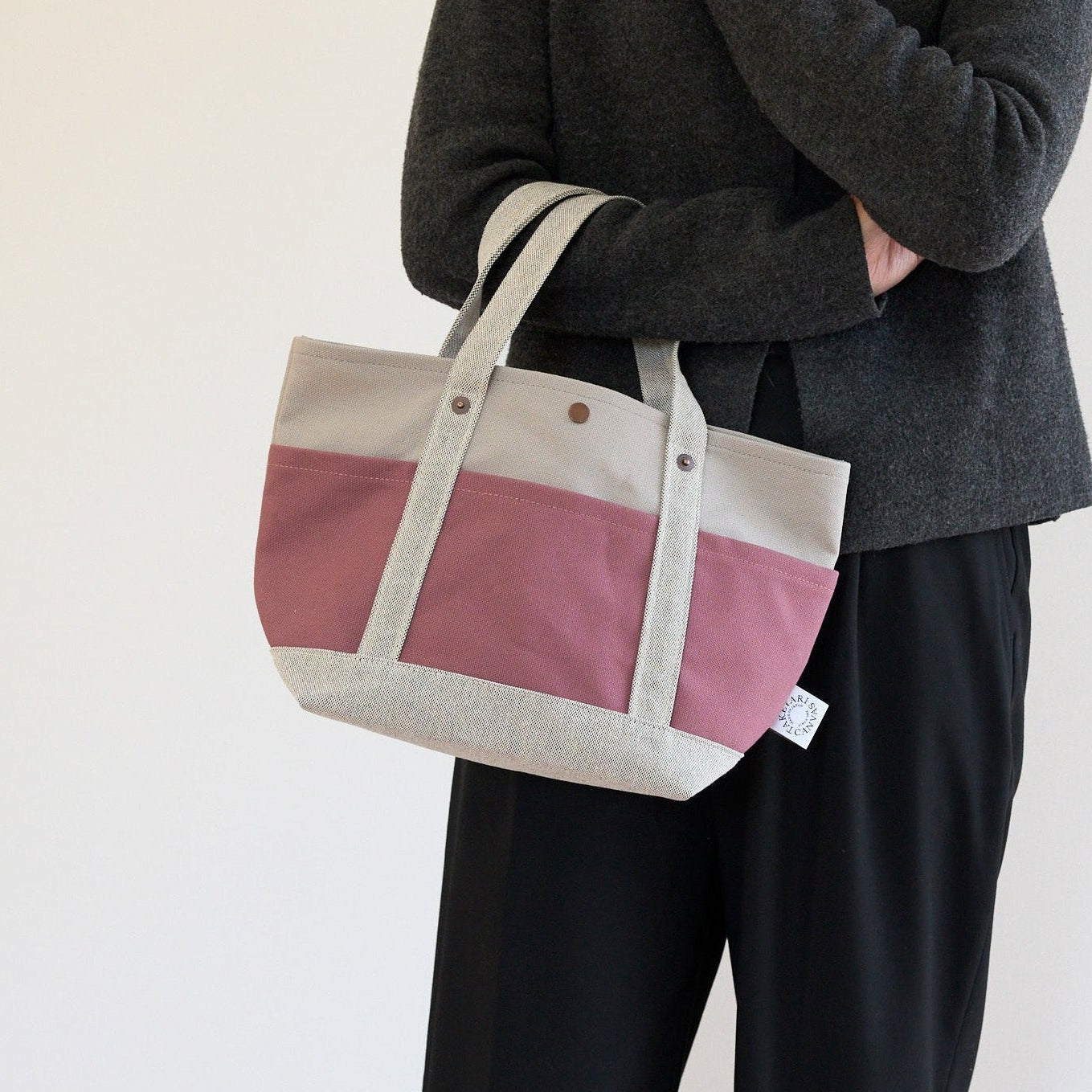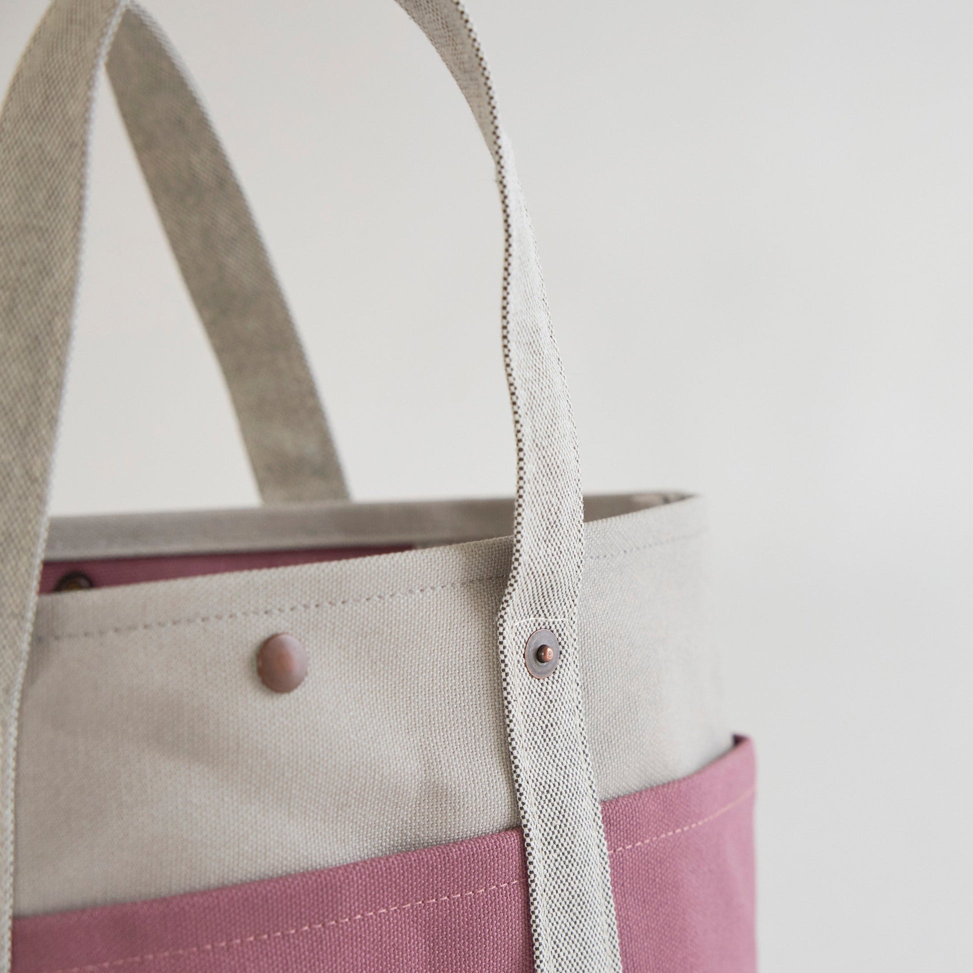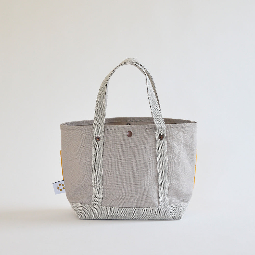 8号帆布を使用し、持ち手と袴に使用した爽やかなシャンブレー帆布がアクセントになっています。小ぶりながらしっかりと収納力があり、ポケットも充実。軽量なので、デイリーバッグにおすすめです。