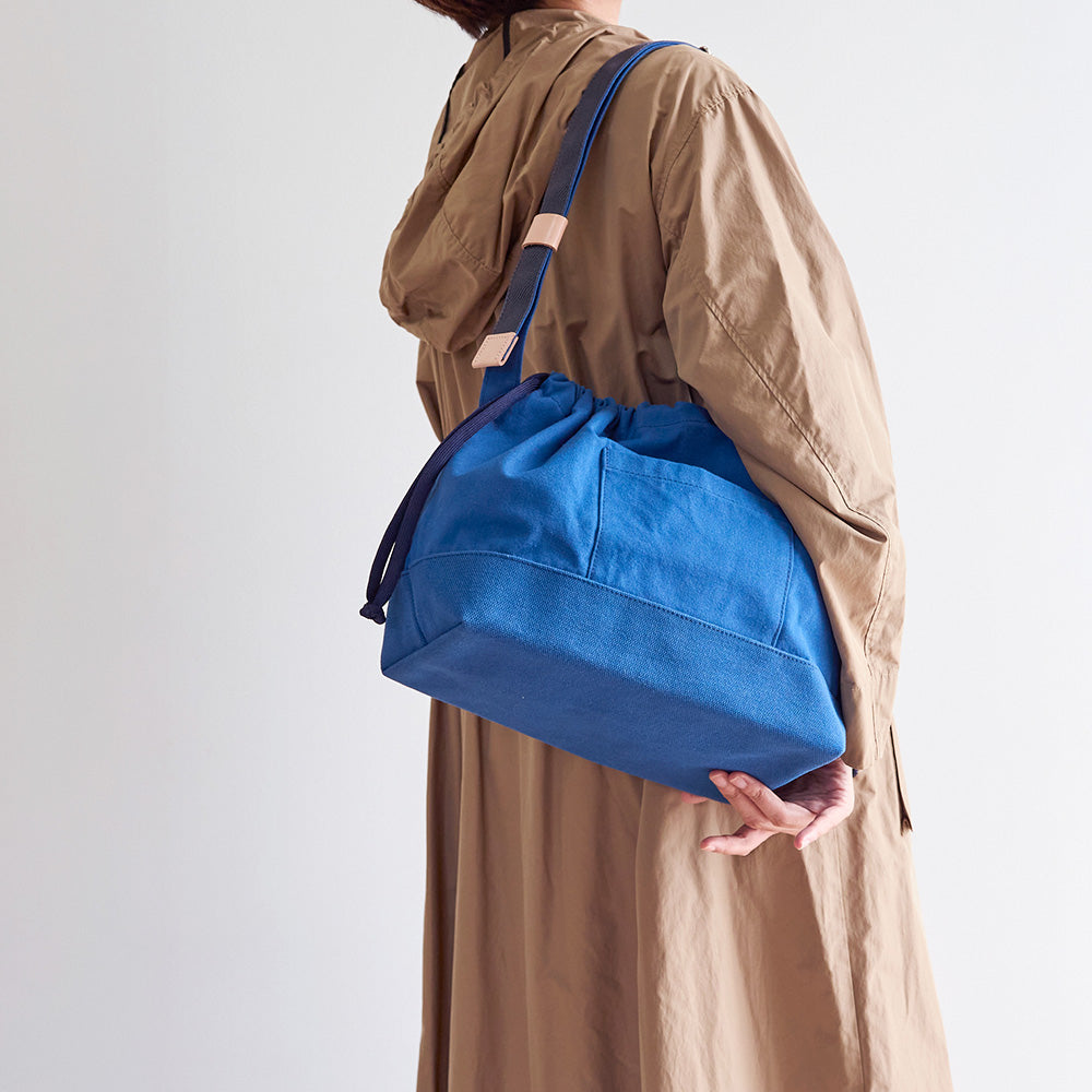 普段使いに便利な巾着バッグM。ゆったりとマチがあり、プラスαの荷物も入ります。